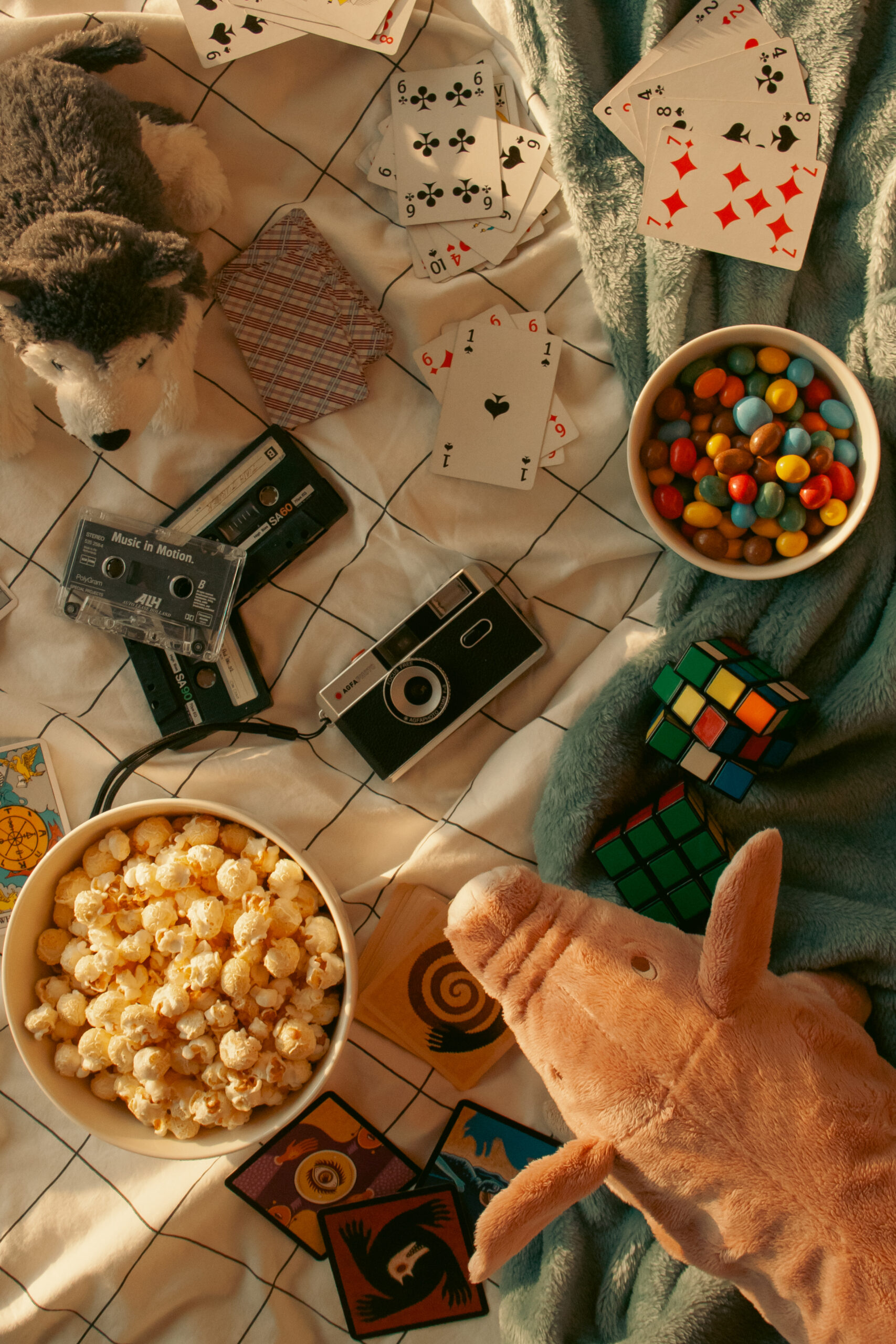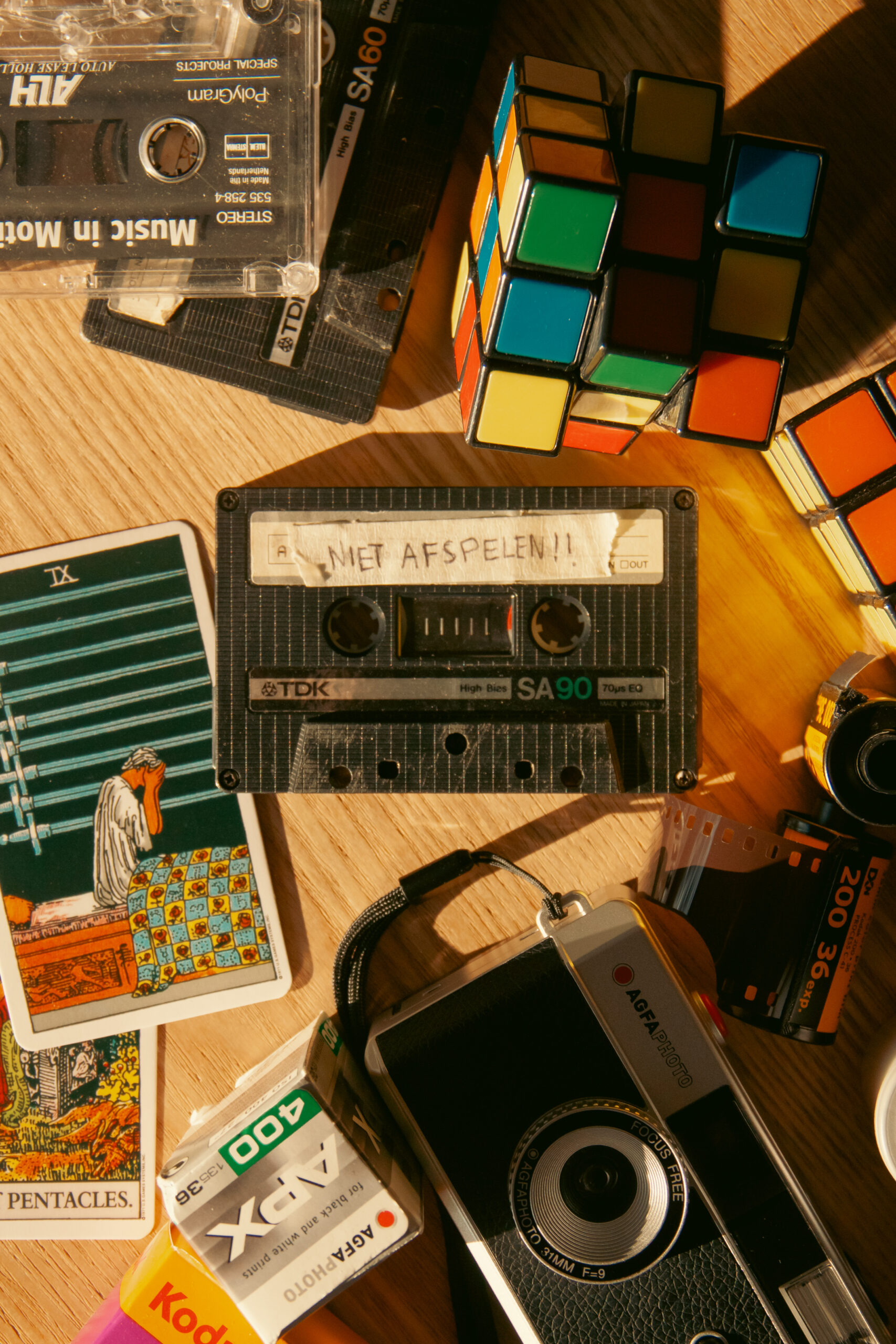 Above you can see the three options I presented to the students. the first one is more based on some old technology and toys, since the play took place in ’70s. Personally I really like the detail of the tarot card with someone with their head in their hands and the cassette that say’s “niet afspelen!!” (don’t play!!) hinting to embarrassment. the other two are more about the sleepover part the teens are having with some old tech in there.
