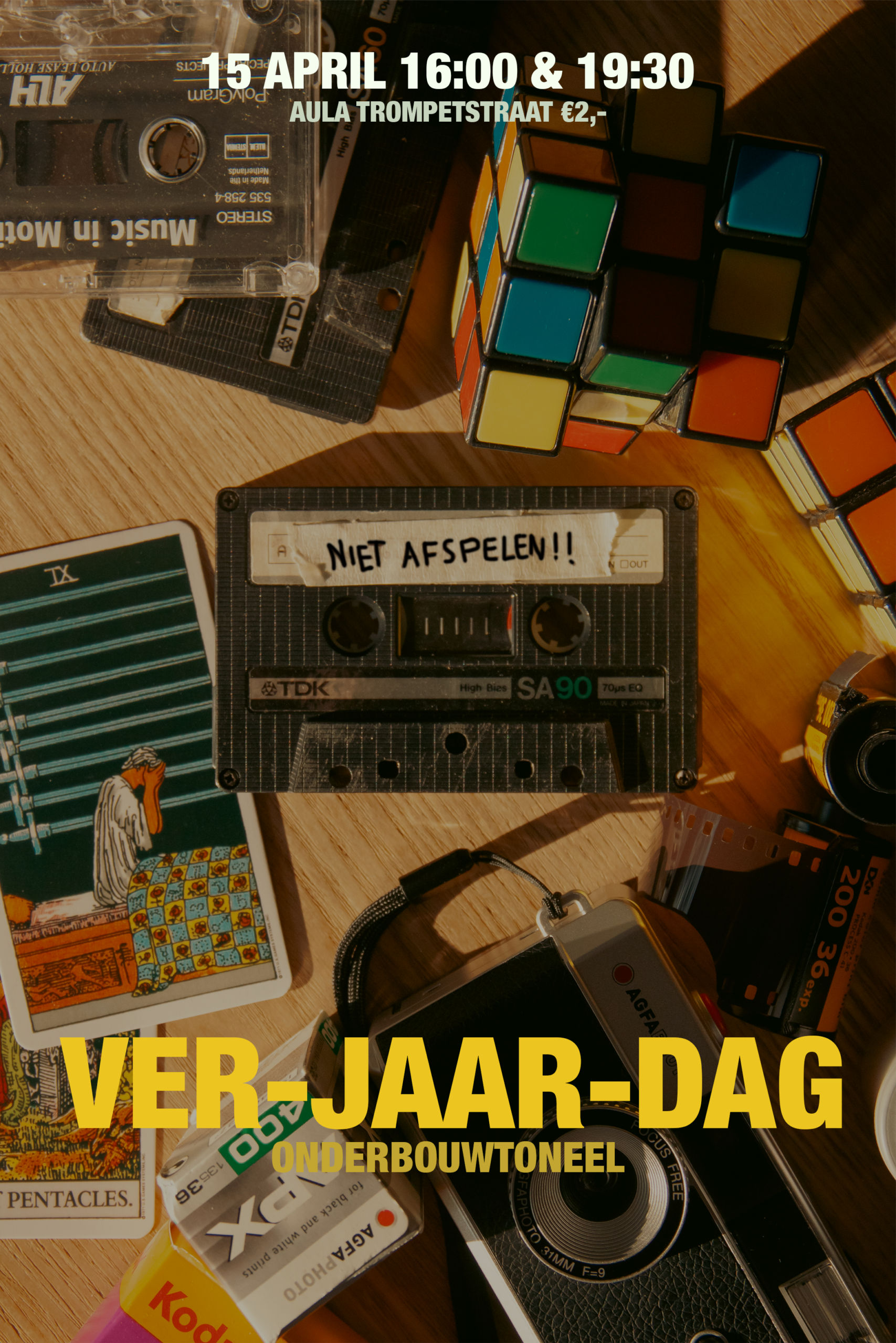 Below you can see the final poster design. The title “ver-jaar-dag” translates to Birthday but the direct translation is ver-year-day, so it has more than one meaning, it is about a birthdays and aging, but also about different generations/years.